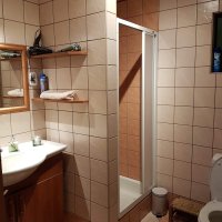Fürdőszoba wc-vel, külön wc, valamint 30 nm terasz, melyből kb 20 nm szúnyoghálóval védett.