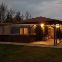 Klimatizálva a nappali/konyha rész van, de ez az egész házat lehűti, ha a ház zárva, a szoba ajtók pedig nyitva vannak.
