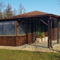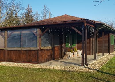 A terasz mellett kerti grillsütő van elhelyezve,melyhez egy sütésre való adag fát mindig igyekszünk oda készíteni!